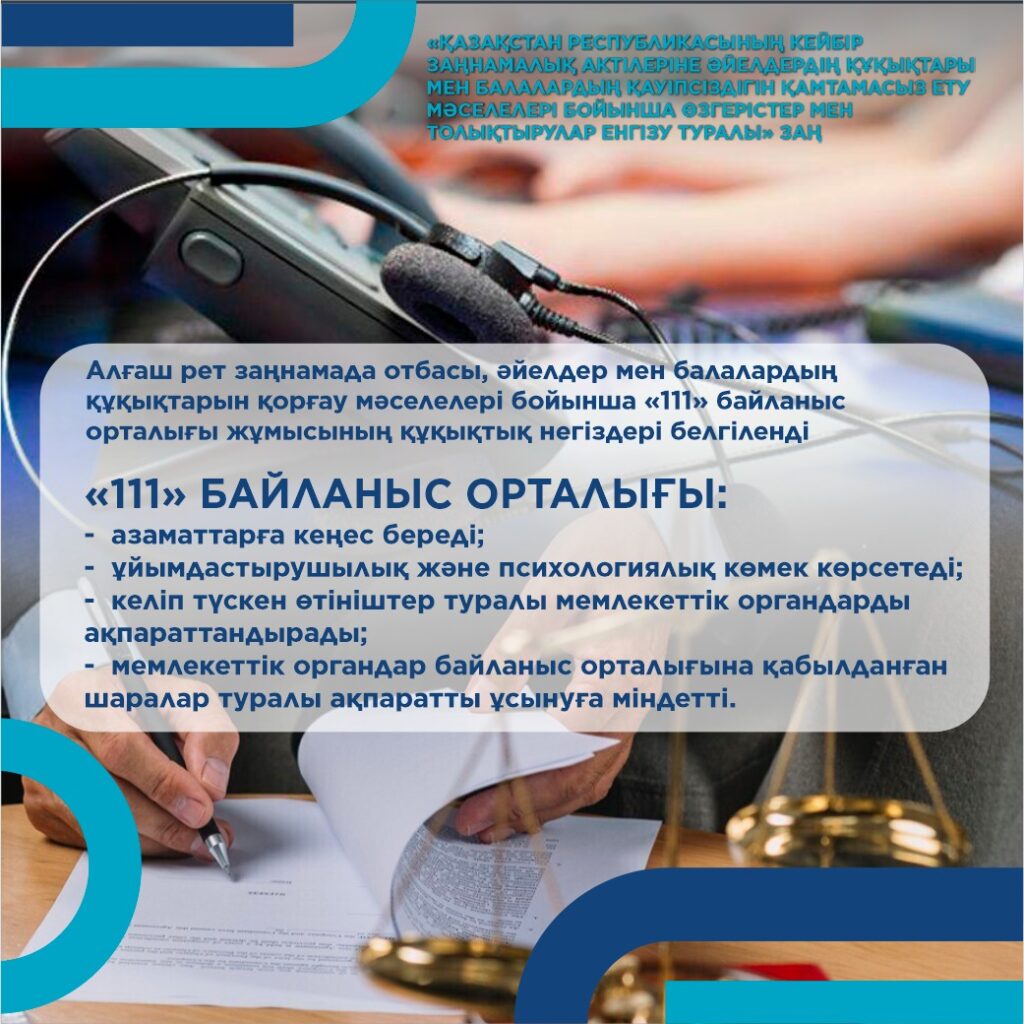 Президент Қасым-Жомарт Тоқаев «Қазақстан Республикасының кейбір заңнамалық актілеріне әйелдердің құқықтары мен балалардың қауіпсіздігін қамтамасыз ету мәселелері бойынша өзгертулер мен толықтырулар енгізу туралы» және «Қазақстан Республикасы Әкімшілік құқық бұзушылық туралы кодексіне әйелдердің құқықтары мен балалардың қауіпсіздігін қамтамасыз ету мәселелері бойынша өзгерістер мен толықтырулар енгізу туралы» Қазақстан Республикасының заңдарына қол қойды.